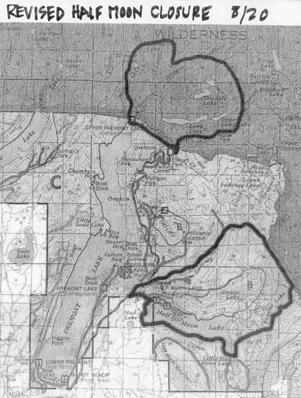 Contrary to what you might have read elsewhere, we do not have 5 helicopters and 4 engines here working our fires, and fortunately haven't ever had that many even when the fires were burning really hot. Things have progressively wound down since the early part of the week. Three of 4 fire fighting crews have moved on to other fires, and currently the Pinedale Ranger District has one 20-man crew in addition to their own personnel on local fires, for a total of about 35 firefighters. Two engines and one helicopter support the ground crews. Half Moon is being called 100% contained, and Triangle is 75% contained. The District put 17 helicopter bucket drops on Triangle fire hot spots yesterday. All trailheads into the Bridger Wilderness in the Wind River Range are currently open, including the one at Elkhart Park. The Long Lake and Glimpse Lake trails remain closed due to the Triangle fire, which is burning in the wilderness area between Long Lake and Triangle Lake. The road to Half Moon Lake Resort is now open, and they are taking in guests again. Firefighters are still using the road to do mop up on the Half Moon fire, so the fire area is still restricted, and visitors should be alert to fire fighting traffic on the narrow, windy road. The Half Moon Lake boat dock is now open to the public, but the Forest Service campground will remain closed. The Lovatt fire is declared out and the Boulder Canyon trail is open again to the public. Sandy Beach is again open to the public for daytime use, but the Picnic Area is closed since it is still being used as fire camp. The Sweeny Creek area is open, as well as Little Half Moon Lake. Green River Lakes is still getting a lot of pressure and use from people who are coming here who have been bumped from other areas. The campgrounds at Green River Lakes and New Fork Lakes are pretty much full. The Fremont Lake campground and 2 boat docks are open. As we write this update this morning, the temperature is currently around 60 degrees and warming up. Skies are overcast and winds are calm. "There's a momentary lull. Here." said Barb Franklin, Information Officer for the Pinedale Ranger District. Looks like it could even rain today... Other Area Closures & Fire Information: