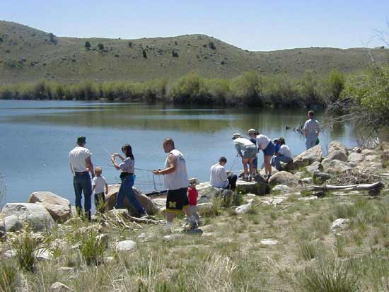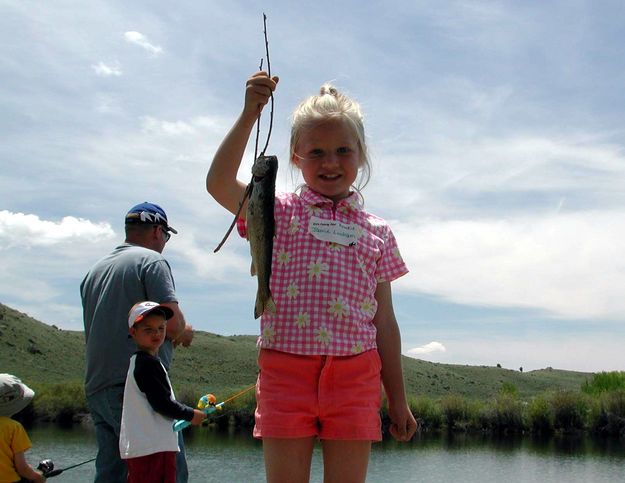 Kid's Fishing Day at the CCC PondsKid’s Fishing Day is held each year in June at the CCC Ponds near Fremont Lake in conjunction with National Fishing Week. Kids young and small are invited along with their parents or an adult. This is a great way to spend the day with your favorite kid doing fun fishing-related activities! Lunch and refreshments and many fun Clinics about fishing are held. Participants are awarded prizes. The Clinics typically include: Spinning & Fly Casting Instruction; Fishing Safety; Hook Baiting; Fish Handling; Fishing Ethics; Knot Tying; Fish Habitat; Fish Identification. Any adult interested in volunteering with any of these activities is welcome to participate. Kids’ Fishing Day is sponsored by the Wyoming Game & Fish Department, U.S. Forest Service, Bureau of Land Management, Trout Unlimited and EnCana USA. The CCC Ponds were first built near the south end of Fremont Lake in the 1930s by the Civilian Conservation Corps, then were improved for fishing and wildlife habitat in the late 1990s with the help of local school children, federal and state agencies, businesses and organizations.